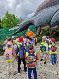 W NASZEJ PLACÓWCE STARAMY ORGANIZOWAĆ SIĘ ROŻNE CIEKAWE WYCIECZKI. TYM RAZEM WYBREALIŚMY SIĘ DO INWAŁDU DO PARKU DINOZAURÓW. TRZY NASZE GRUPY SPĘDZIŁY SUPER CZAS.PANI PRZEWODNIK OPROWADZIŁA NAS PO PARKU OPOWIADAJĄC NAM CIEKAWOSTKI O KAŻDYM Z DINOZAURÓW ZNAJDUJĄCYM SIĘ NA TERENIE PARKU. POTEM WSPIELIŚMY SIĘ NA OGROMNĄ WIEŻE GDZIE MOGLIŚMY OGLĄDAĆ PANORAMĘ PARKU ORAZ OGRÓD JANA PAWŁA II. NASZE PANIE WOZIŁY NAS SUER SAMOCHODAMI POKONUJĄC TOR PRZESZKUD. BYŁA CIUCHCIA, KTÓRĄ JECHALIŚMY, QUADY ORAZW WIELE INNYCH ATRAKCJI. BYŁA TO BARZO UDANA WYCIECZKA . MIMO ZMECZENIA WRÓCILIŚMY DO PRZEDSZKOLA BEZPIECZNIE.