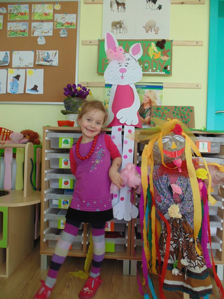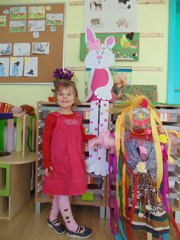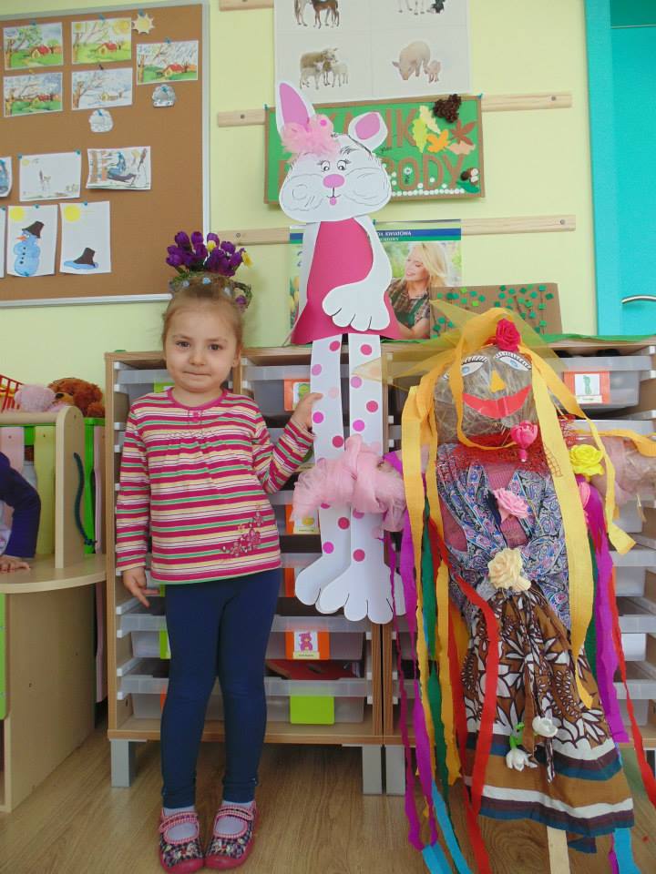 Pierwszy dzień kalendarzowej wiosny – 21 marca – był bardzo kolorowy i wesoły w naszym przedszkolu. Dzieci przygotowały ekologiczną „Marzannę” – symbol zimy. Dzieci nauczyły się piosenek o tematyce wiosennej, w rytmie których, tuż przed obiadem udały się wraz ze swoimi wychowawczyniami odgonić brzydką zimę i spalić Marzannę.